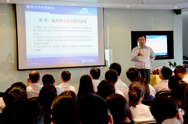 在大家热烈的掌声中,王少波董事长首先阐明了公司战略的本质,就是明确公司的发展方向,并坚定地执行和持续的升级。即联合要以“成为伟大的公信力公司”的愿景为联合的长远发展方向和定位,要以“让信用呈现价值”的使命为联合愿景实现的清晰路径,来制定和实现联合以持续风控为保障、以客户为核心的,有灵魂的战略、行动的战略、与时俱进的战略。