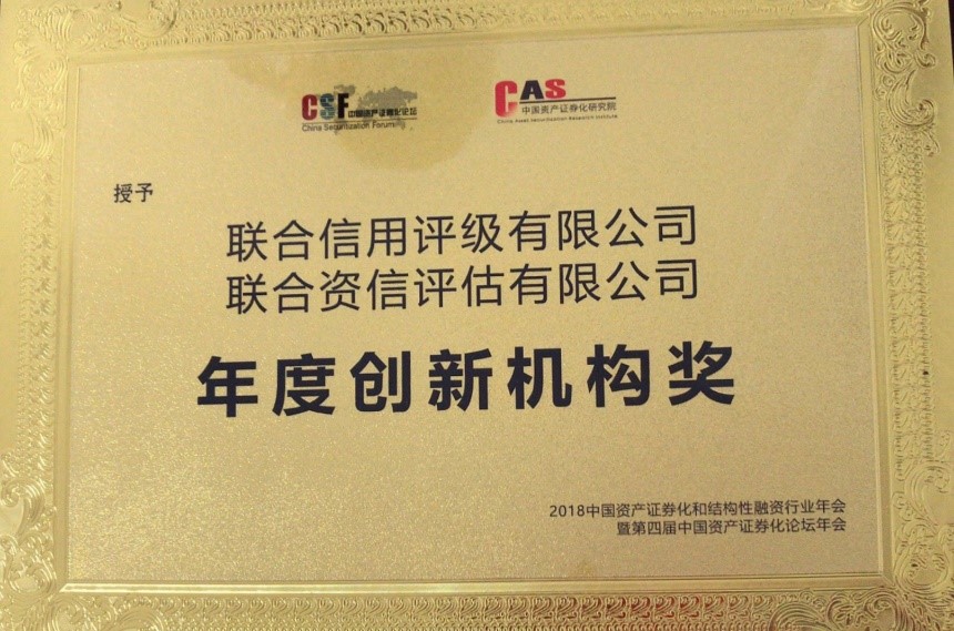 【5月10日北京】广受业内关注的“第四届中国资产证券化论坛年度奖”于5月8日在京隆重颁发。联合资信与联合评级荣获“年度创新机构”大奖。同时获奖的还有众多由联合资信与联合评级承做的项目,包括信贷资产证券化年度杰出交易(建元 2017 年个人住房抵押贷款资产支持证券系列、和享2017年个人消费贷款资产支持证券系列)、资产支持票据年度优秀交易(前海结算2017年度第一期碧桂园供应链应付账款资产支持票据)、企业资产证券化年度杰出交易(新派公寓权益型房托资产支持专项计划、百度-长安新生-天风2017年第一期资产支持专项计划)、"场外交易(机构间私募产品报价与服务系统)"年度优秀交易(中融企弘-富国资产-首创置业 2017 年第一期购房尾款资产支持专项计划、南京银行-腾海租赁 2017 年度第一期应收账款债权融资计划)等。
